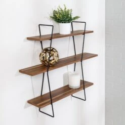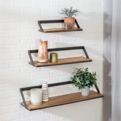 Black/Natural Floating Metal And Wood Wall Shelves (Set Of 3)