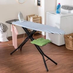 White/Gray Steel T-Leg Adjustable Ironing Board With Cotton Heat-Resistant Cover