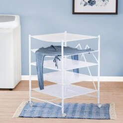 White 5-Tier Mesh Folding And Rolling Drying Rack