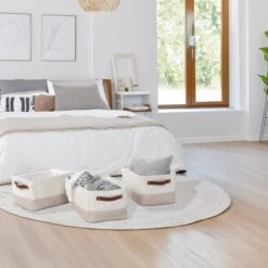 White/Beige 3-Pack Decorative Canvas Storage Bins With Handles