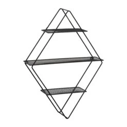 What’s the phrase? A diamond lasts….for a long time? While we can’t promise this diamond-shaped decorative wall shelf will last forever, what it displays might. That’s because this uniquely shaped three-tier shelf is ideal for showcasing cherished memories. Those memories can come in the form of framed photos of loved ones on an unforgettable day, an antique passed down through generations, or a lovely candled gifted by a friend for a birthday. No matter what’s chosen for the sturdy steel shelves coated in a cool black matte finish, the items displayed will harken fond memories at every glance given to the diamond on the wall.
