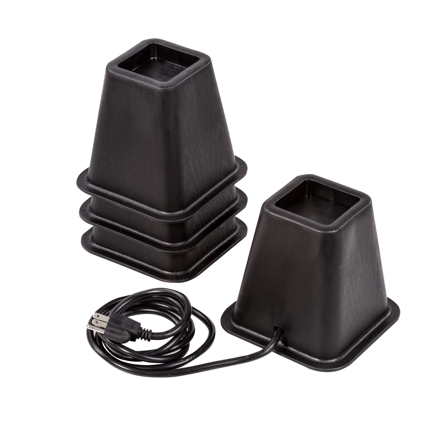 Create instant under-bed storage while adding 5.5-inches of height to your bed with these sturdy bed risers. In addition to decreasing clutter, two electrical outlets and two USB ports built into one of the bed risers create a convenient power supply for all your devices. The 6.5-foot long power cord allows you to have your bed virtually anywhere in the room with the bed riser plugged into the wall outlet, extending your devices’ power station. Stay charged up while adding storage for off-season clothes, bins, shoes and virtually anything else you can now slide out of sight.
