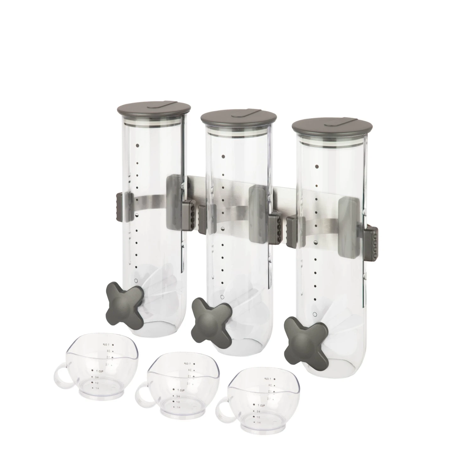 Your cereal consumption is borderline obsessive. When 9 p.m. strikes, you blankly stare into your pantry, wondering which box of flaky or fruity goodness you will pour yourself tonight. See your options a little more clearly with this Wall-Mounted Triple Canister Cereal Dispenser crafted from commercial grade stainless steel. It’s a professional container that takes cereal-ing just as seriously as you do. You’ll feel at ease knowing that the soft rubber paddle wheel will handle your almond nut clusters with care as they tumble down the chute and tap dance into your bowl. A visually stunning addition to any kitchen, you can also fill them with oatmeal, granola, nuts and other dry goods that you fancy.