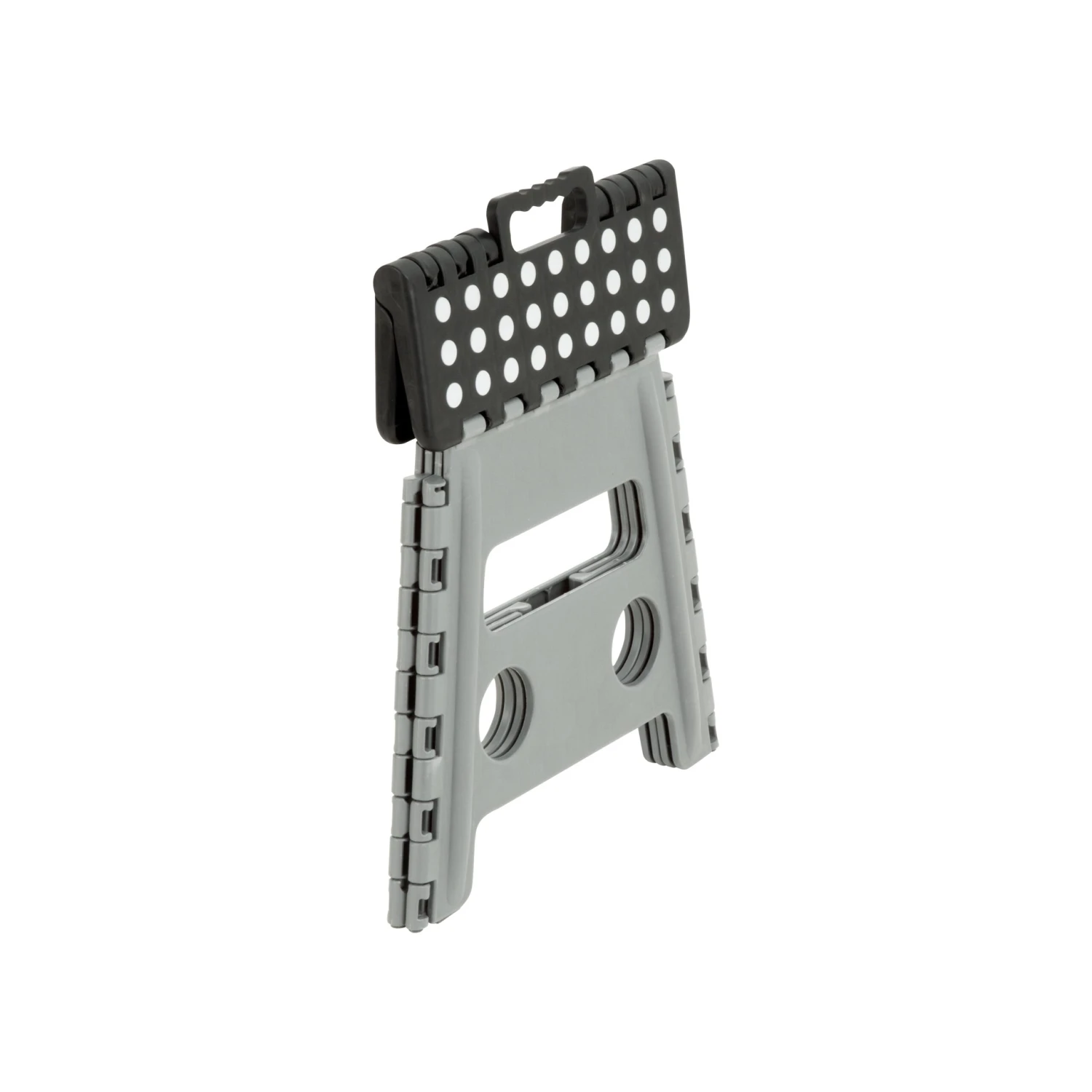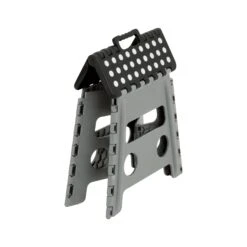 This step stool features a convenient carrying handle with skid-resistant top and feet. Sturdy design and durable plastic construction allow it to support up to 300lbs. Great for bedrooms, bathrooms and every other room in the house. Folds from a 12.75″ H down to an easy-to-store 1.75″ width.