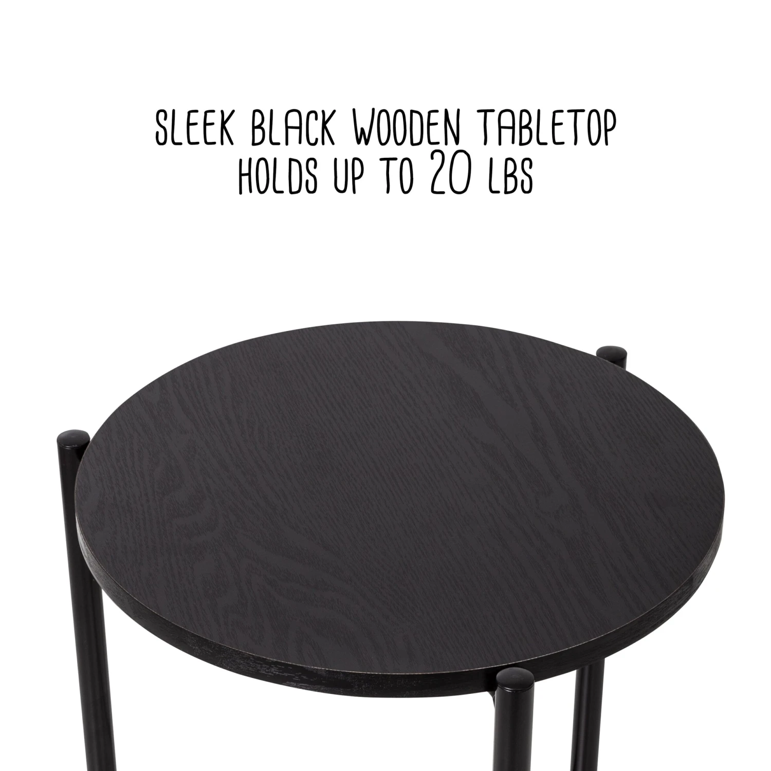 - Sleek black wooden tabletop holds up to 20 lbs.