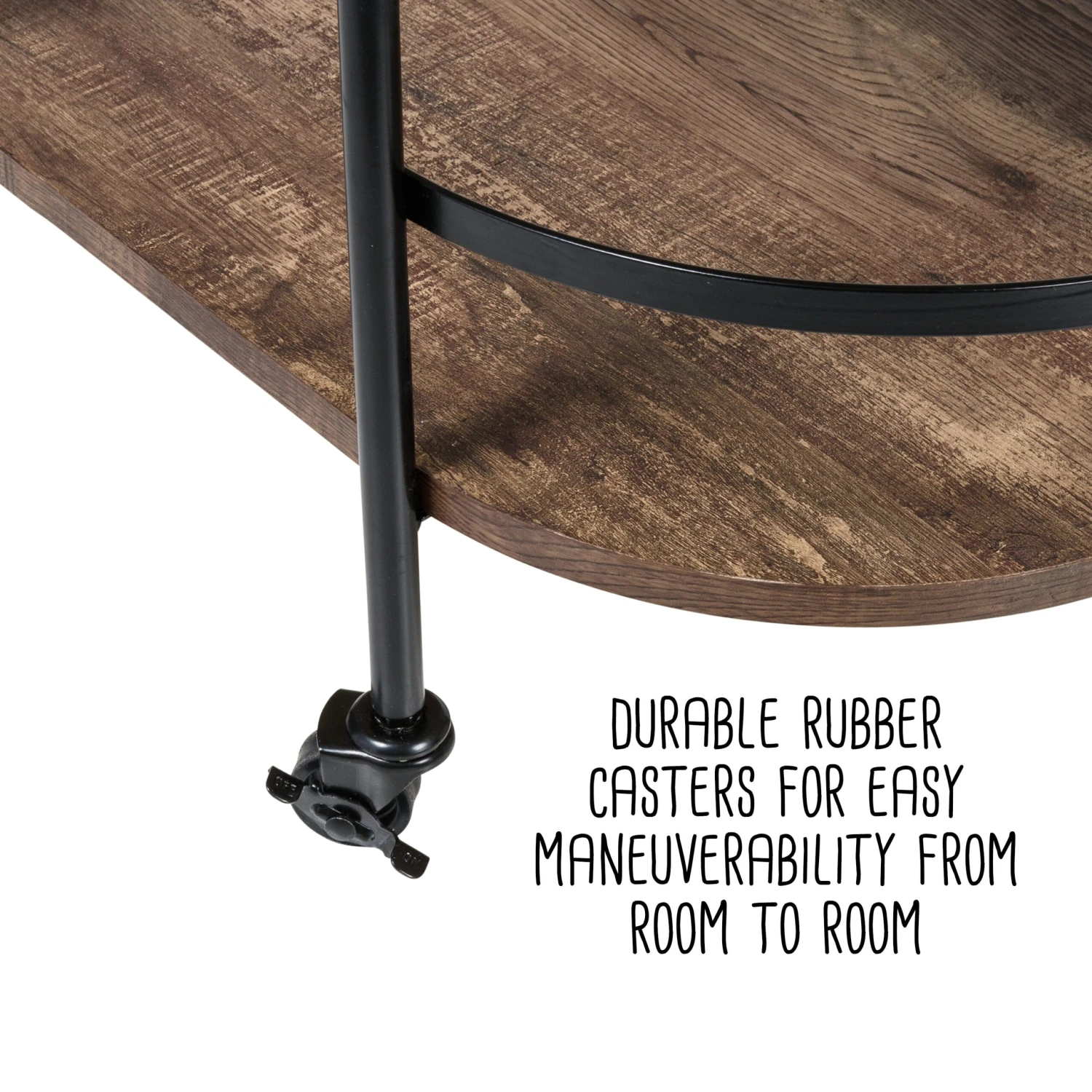 - Durable rubber casters (2 that lock) for easy maneuverability from room to room