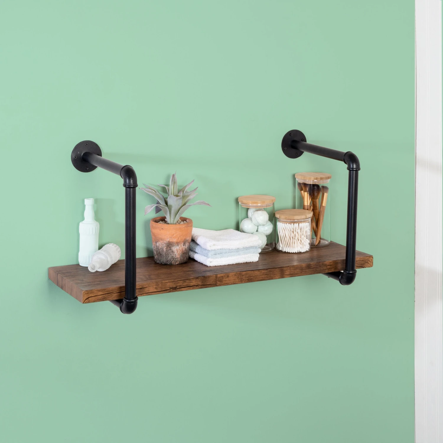 - Industrial shelf design brings sophistication to your space