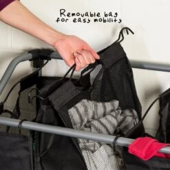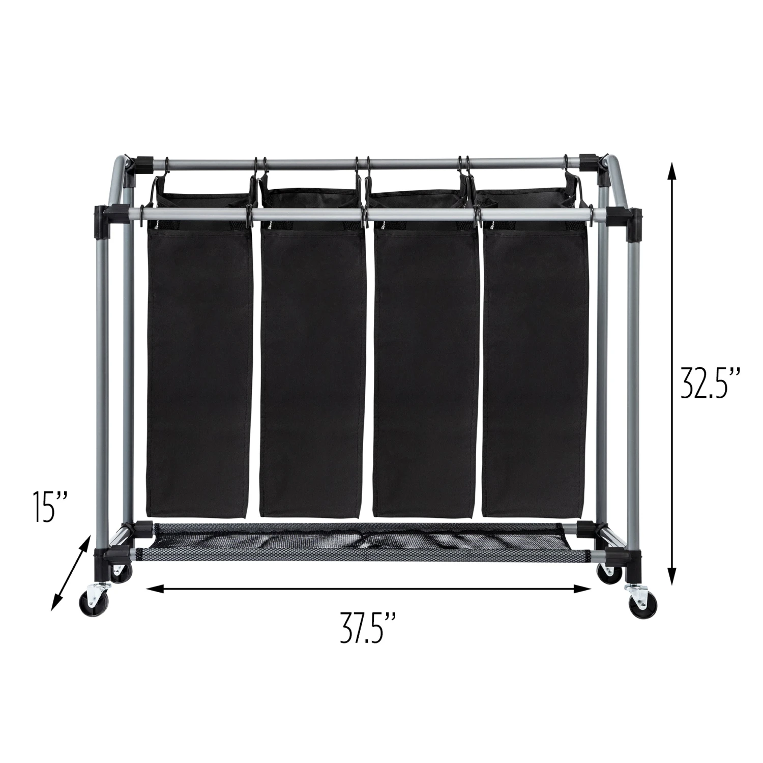You’ve got the fancy bar cart, the mid-century modern credenza—now you can shine up your laundry game too with this sleek Quad Laundry Sorter with black mesh bags. Glowing amid your dirty clothes like a beacon of style, this modern laundry hamper effortlessly glides from room to room while helping you separate your whites, darks and gold lamé loungewear. The breathable black mesh bags keep you breathing a little more fabulously on chore day. Both functional and fancy, this 4 bag laundry sorter has enough moxie to wear designer clothes and separate all the ones that need washing.