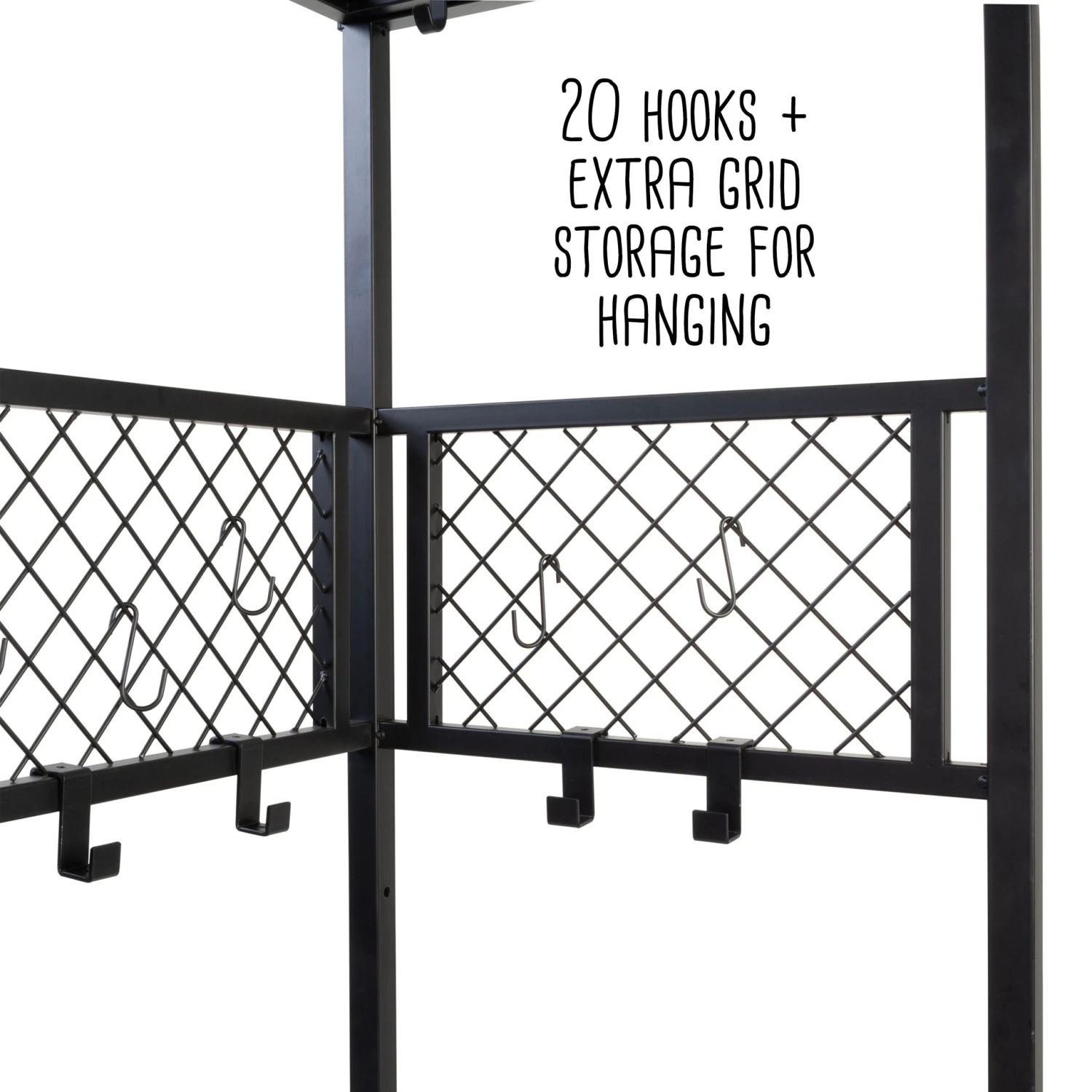 - 20 Hooks + extra grid storage for hanging clothes and more