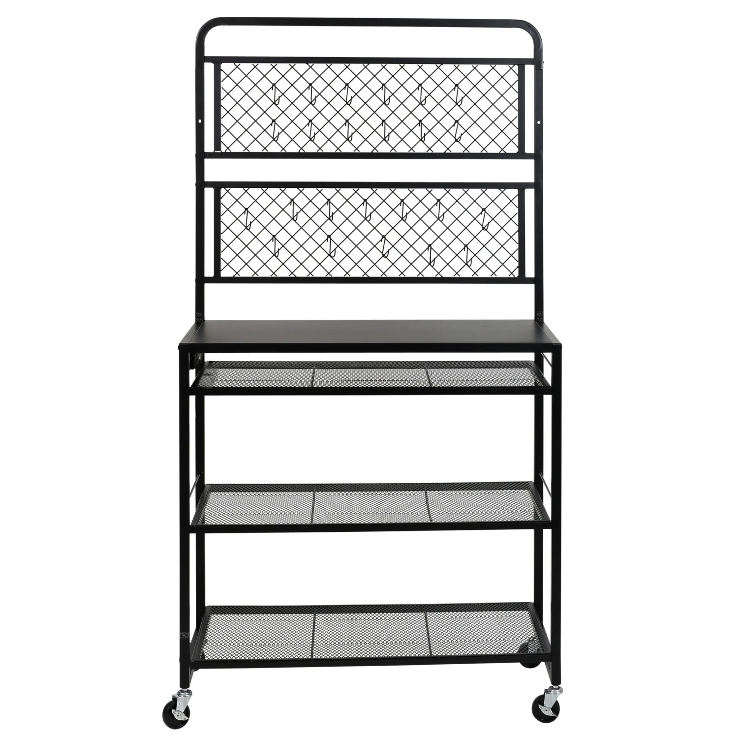 - 3 mesh shelves with varying heights allow you to customize your organization
