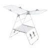 Classic styling and modern conveniences combine in this sturdy quad-leg ironing board. An integrated, retractable iron rest is the perfect spot to rest a warm iron and prevent scorching. The white, powder-coated steel frame offers 7-levels of adjustable height and incorporates a safety lock device. It’s rust-resistant and folds flat when not in use for easy storage. A 100% cotton cover in a blue striped pattern includes a 4mm thick foam pad for a smooth ironing surface every time.
