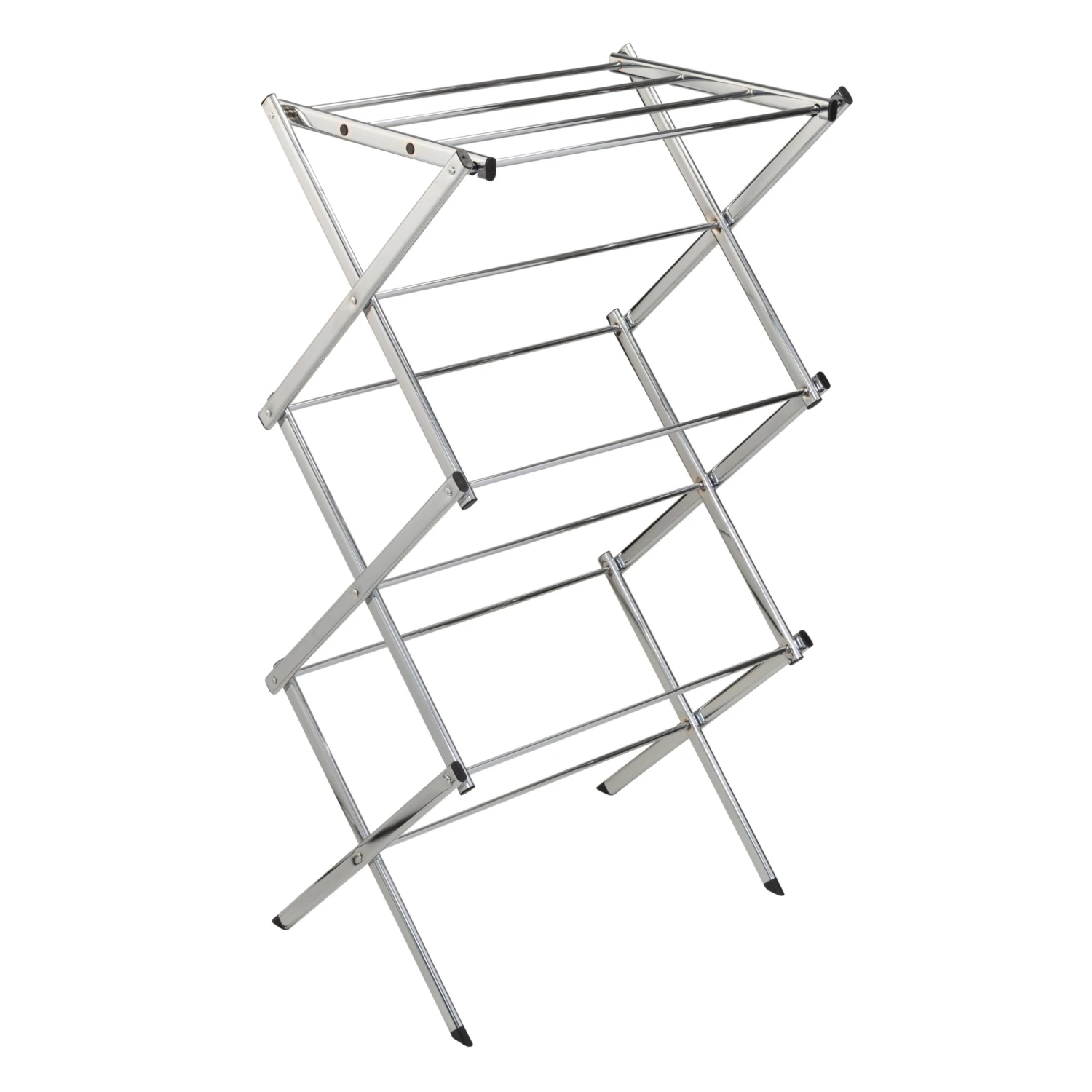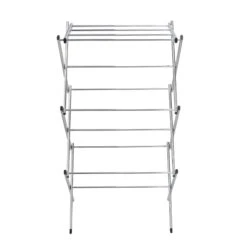 Take a load off your dryer and dry your clothes naturally with this durable and practical clothes drying rack. For indoor or occasional outdoor use, the rack is made from a coated steel frame making it sturdy and rust-resistant. This portable rack can be used anywhere and folds down to 3″ flat for easy storing. The top tier has 4 cross bars and is ideal for air-drying your wet clothes. With 18-linear feet of capacity to air-dry clothes using minimal floor space, this expandable drying rack is a great space-saver.