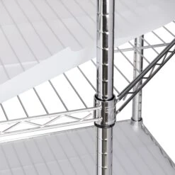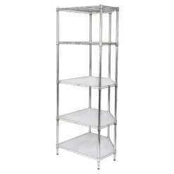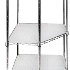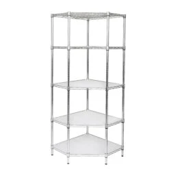 Create visible, accessible storage space instantly with Honey-Can-Do industrial shelving systems. Contemporary chrome finish and 72″ steel frame make this unit the perfect blend of style and functionality. Durable enough for the mudroom, garage, or commercial kitchen; this unit is capable of withstanding up to 350lbs per shelf and its unique design makes it perfect for a corner. Adjustable shelves allow you to change the configuration as your storage needs evolve. Clear shelf liners included.