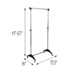 This sturdy garment rack features steel construction and goes from room to room on smooth rolling ball casters. The hanging bar adjusts to accommodate short or long garments and is perfect for managing out-of-season clothing, outdoor gear, or items hung to dry in the laundry room. The modern design adds a contemporary feel to any room of the house that needs extra garment storage.