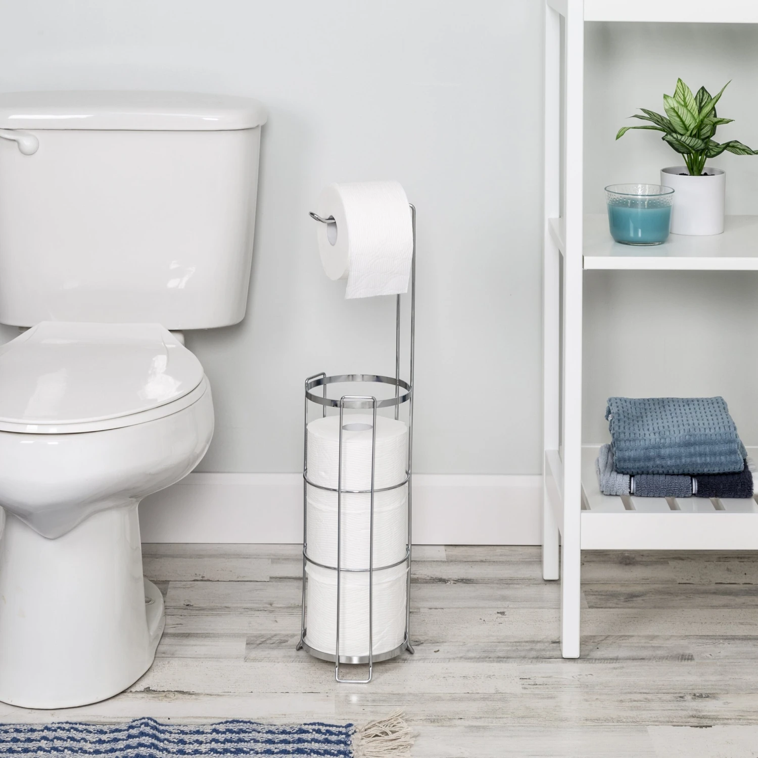 - Conveniently stores up to 3 toilet paper rolls in reserve plus one in use