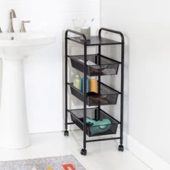 - Weight capacity is 75-lbs for the whole cart, 25-lbs per shelf