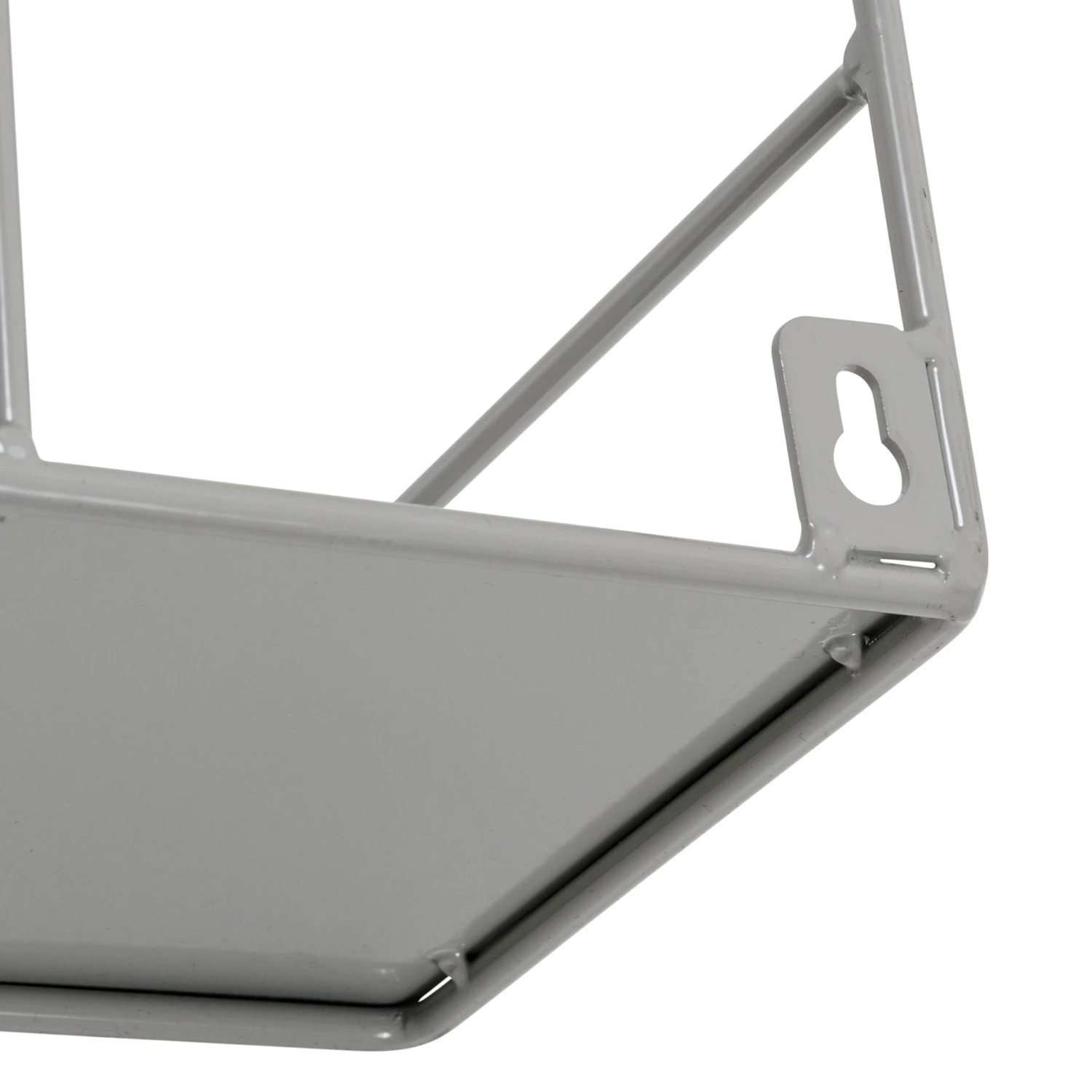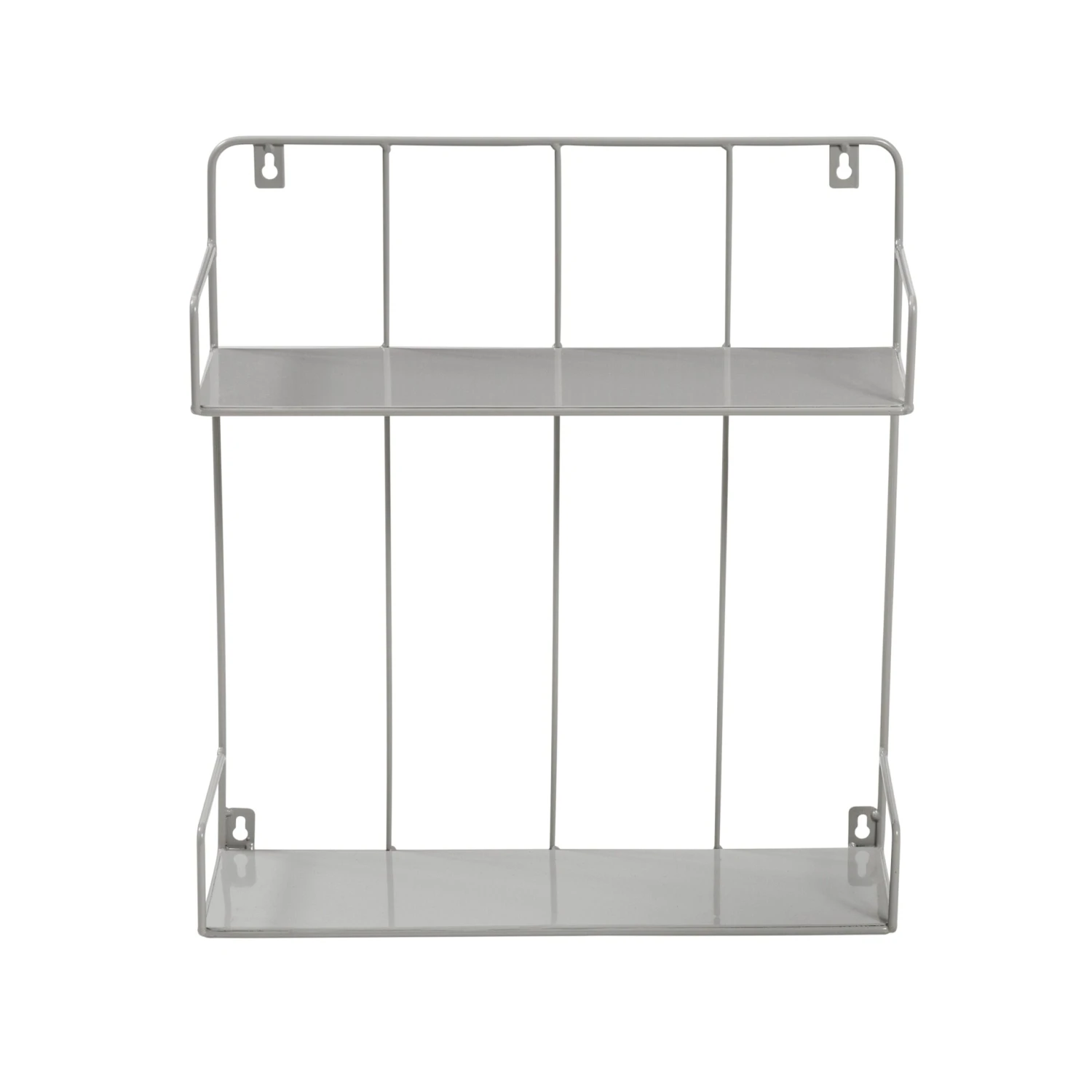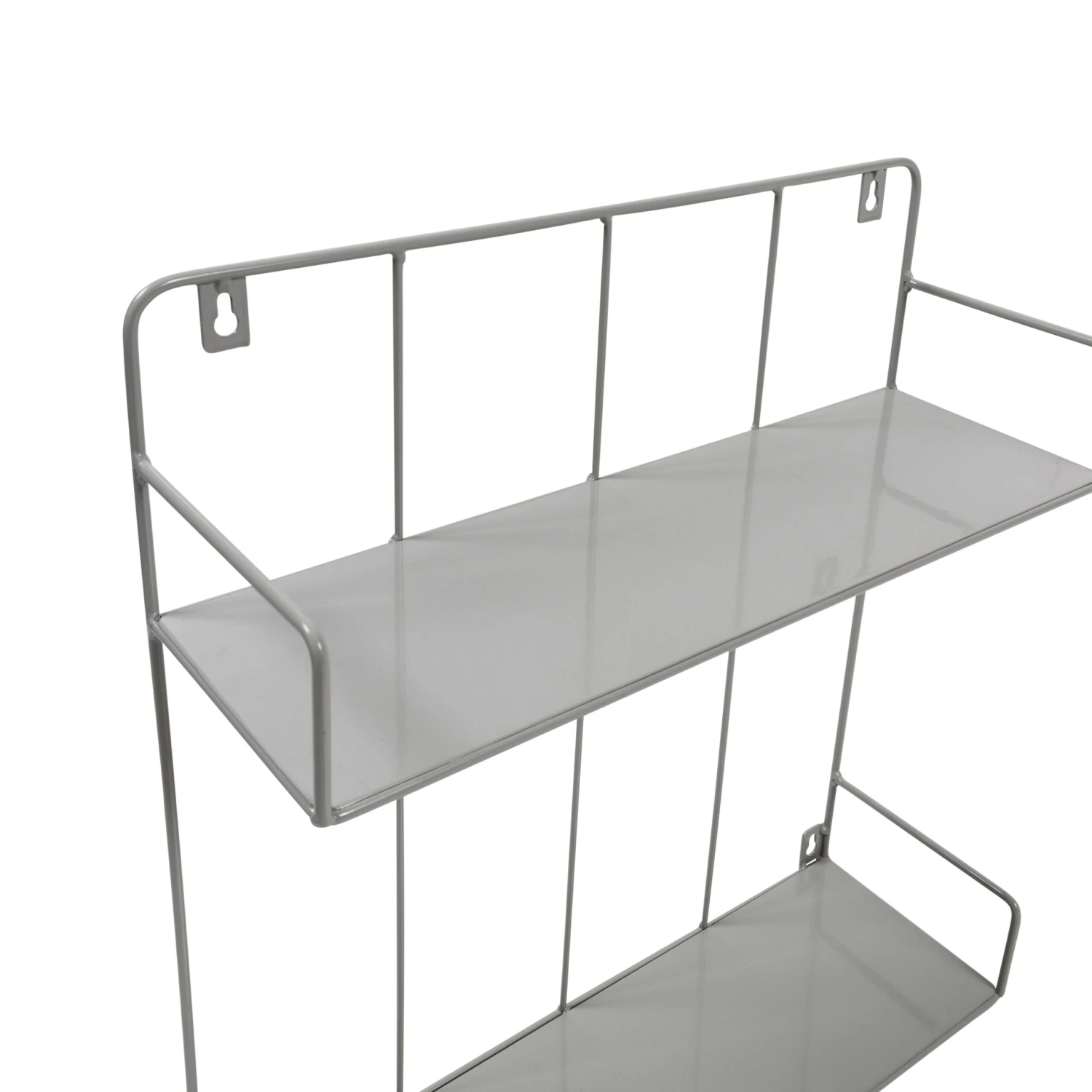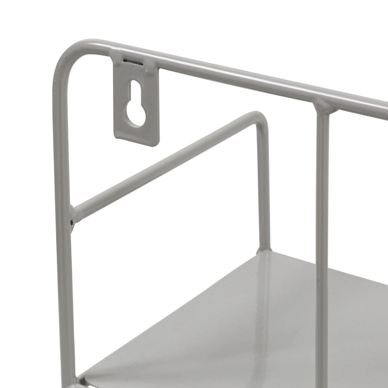 - Double tiered shelf with gray finish