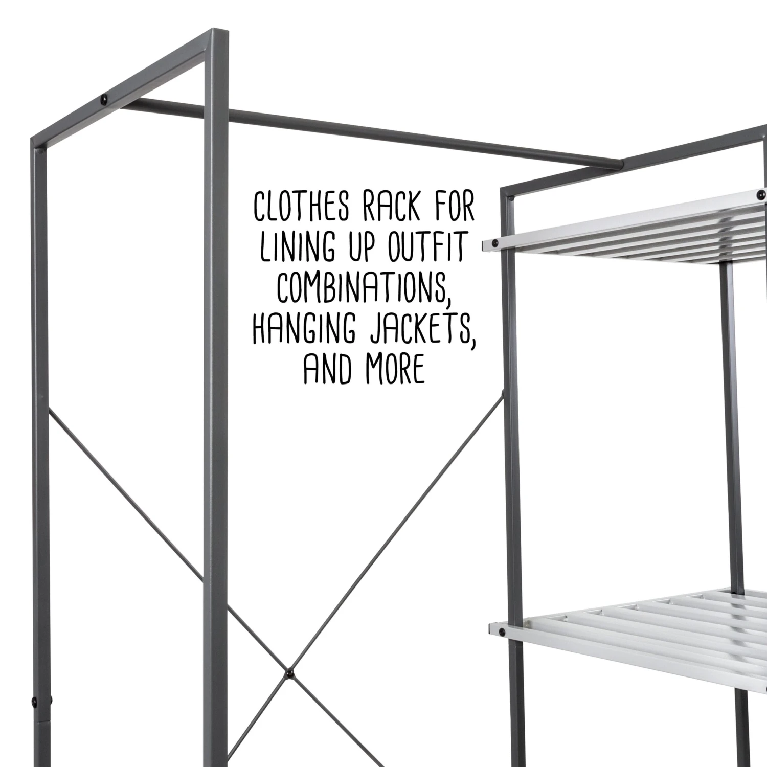 - Clothes rack for lining up outfit combinations, hanging jackets, and more