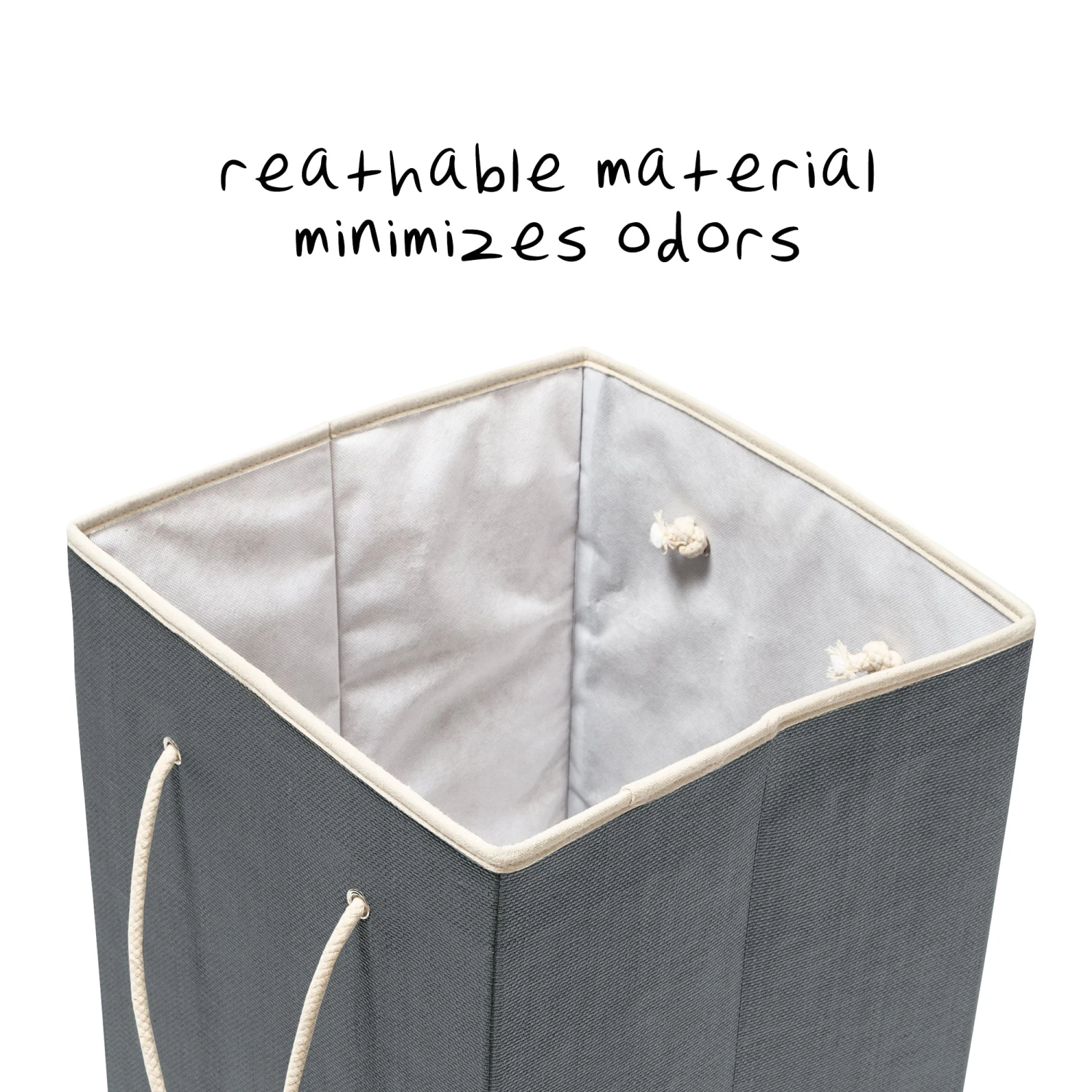 - Durable resin exterior with breathable liner that keeps odor out of hamper