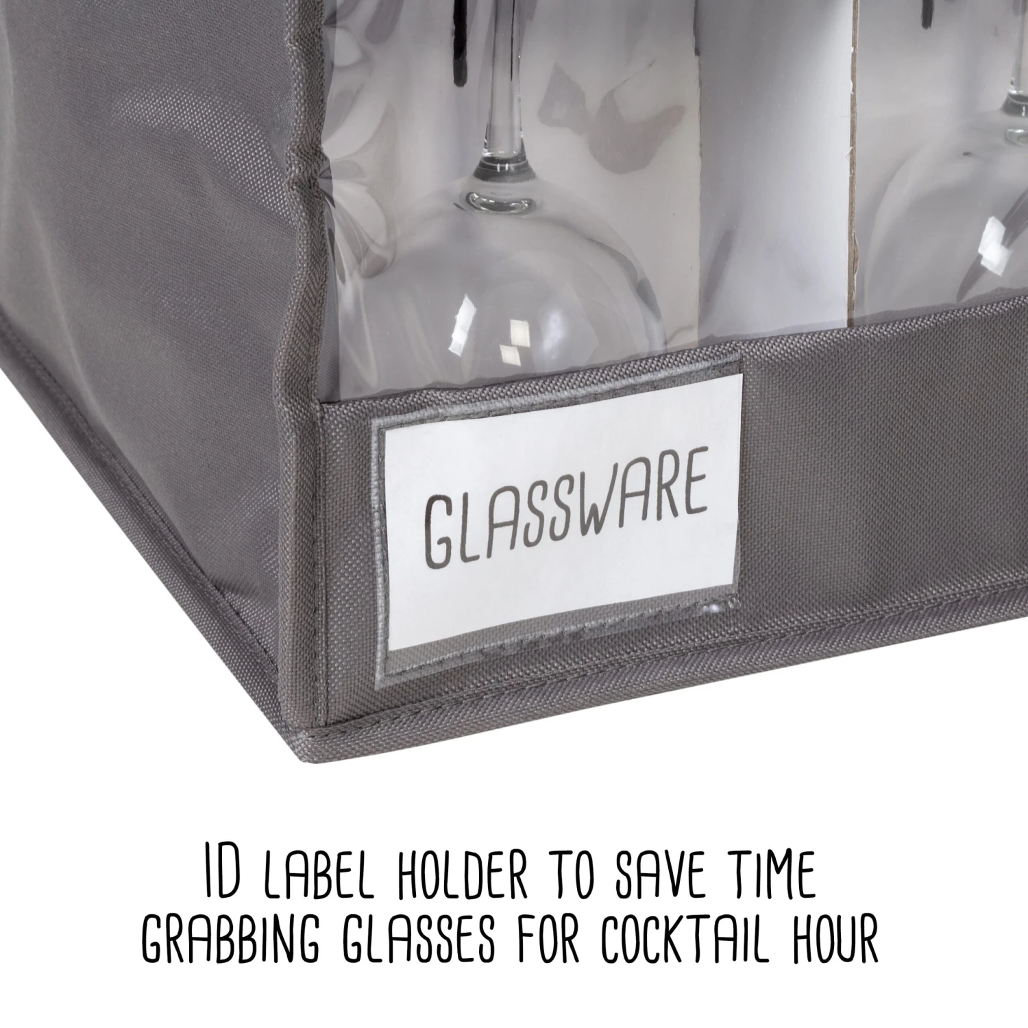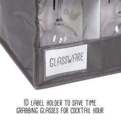 - Safely stores stemware like wine, champagne, martini, and pilsner glasses