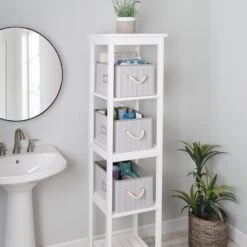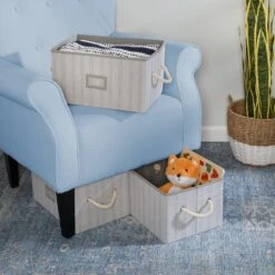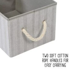 These versatile, large storage bins are perfect for storing clothing, bags, bathing supplies, towels, cleaning supplies, magazines, etc. While large, they are also the perfect size to store on shelves and/or in closets, but also look good and can be left out in the bedroom, bathroom or laundry room. Strong, durable fabric holds up to heavy loads and cotton rope handles allow for easy carrying of bins from room to room.