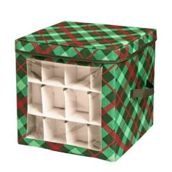 While there’s no denying the majesty of the Christmas tree, what truly makes it special are the ornaments that adorn it. They’re precious reminders of life’s special moments—mini time capsules to a trip taken, a baby held, a memory made. Really, in a typical home, are there any physical items more sentimental and cherished than Christmas ornaments? Take care of these so very special things with the right tool for the right job: this plaid ornament storage box that can safely store up to 48 ornaments. Its moveable dividers make it easier to find space for unusually shaped ornaments, like wide snowmen or tall nutcrackers. And with a clear view panel, you can sneak a peak without making a big fuss.