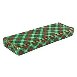 - Low profile and two handles make it easy to store under a bed or back of a closet