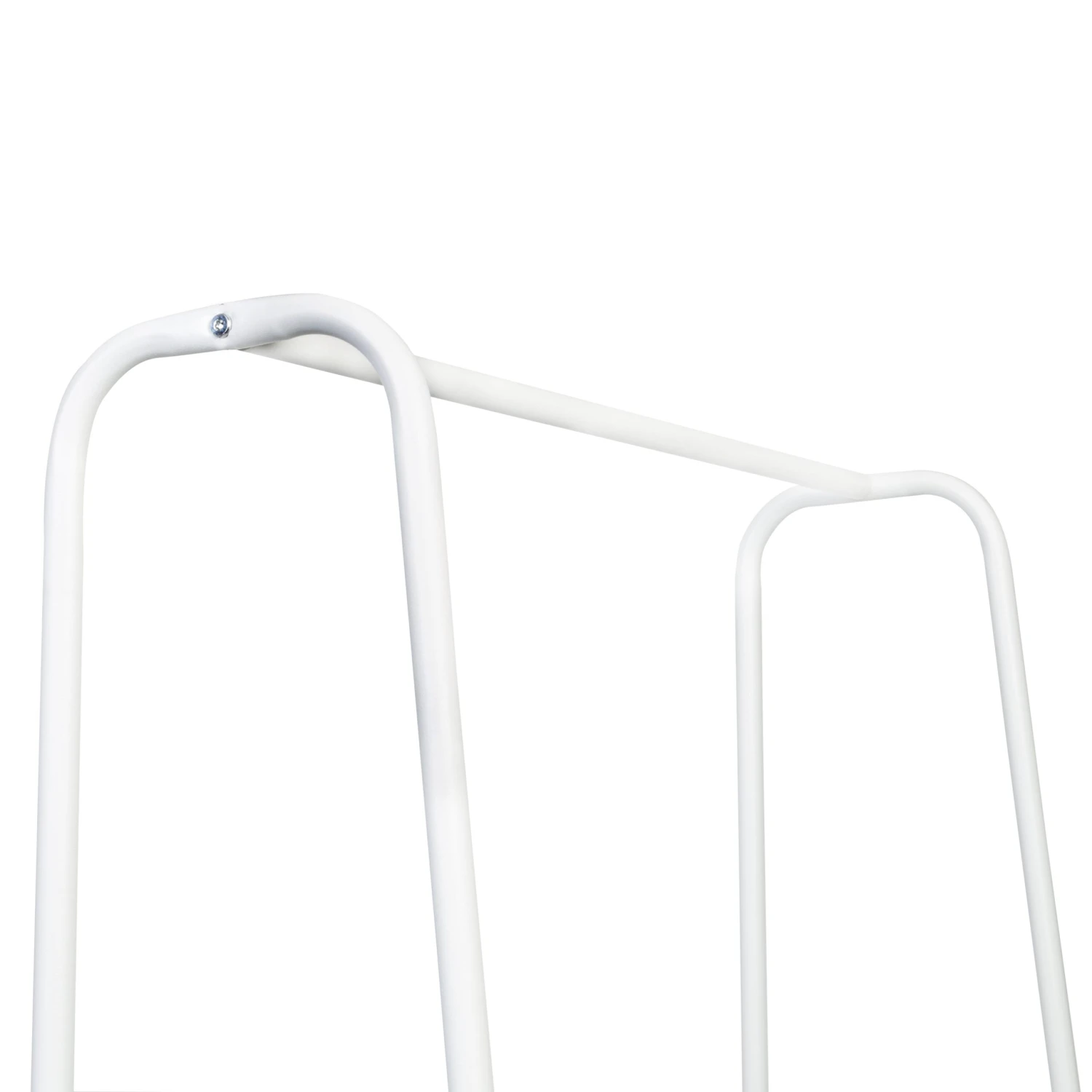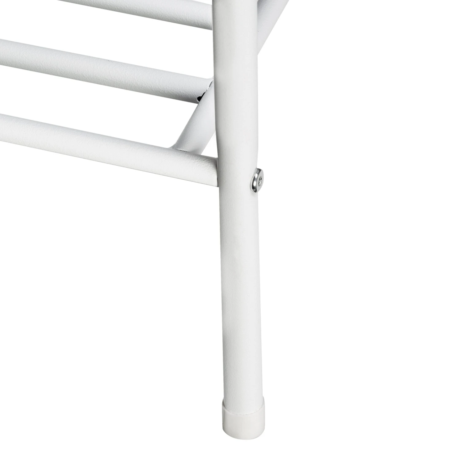 - Matte white finish on steel for sturdy construction with vintage vibe