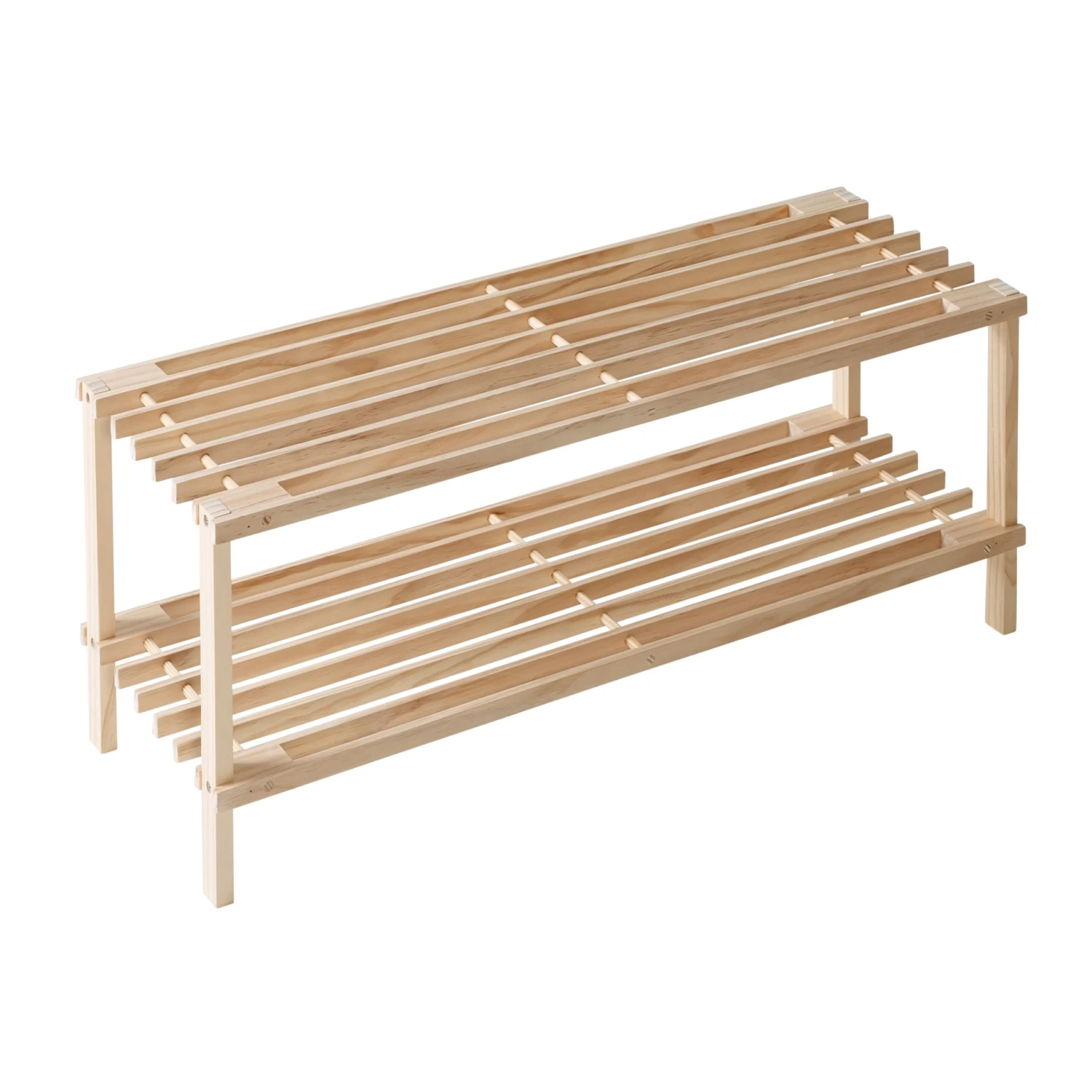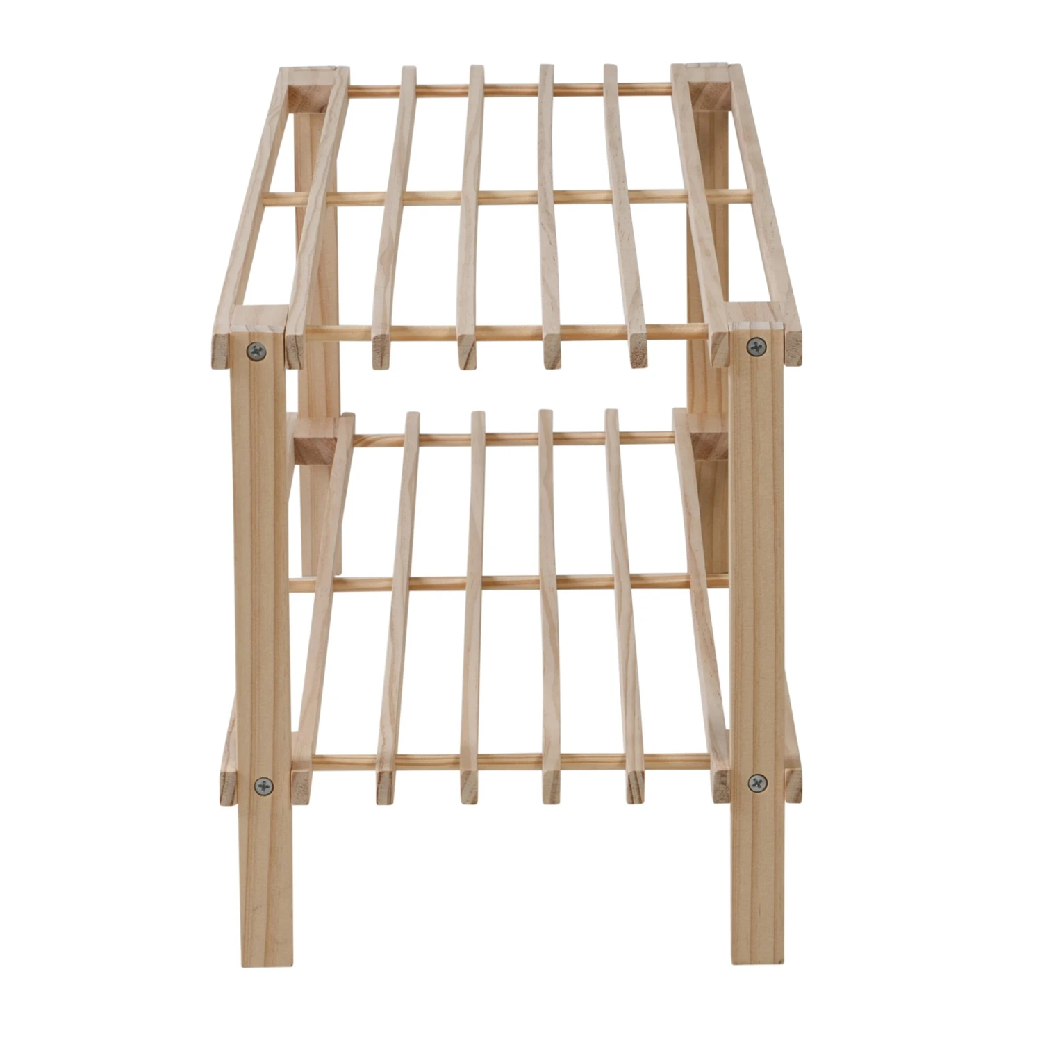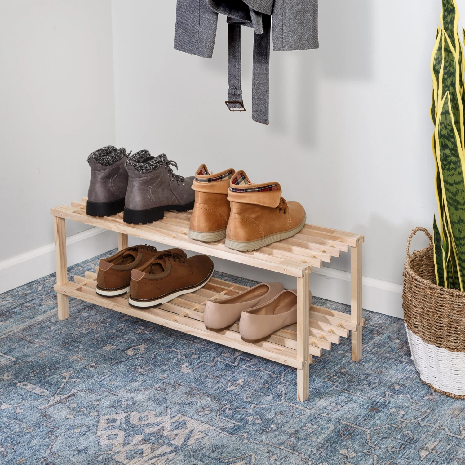 This shoe shelf is the perfect combination of function, versatility, and style. The unit can display 6-8 pairs of shoes beautifully, and more for smaller sizes. Open slats allow air circulation but are close enough together to hold other items such bags or books.