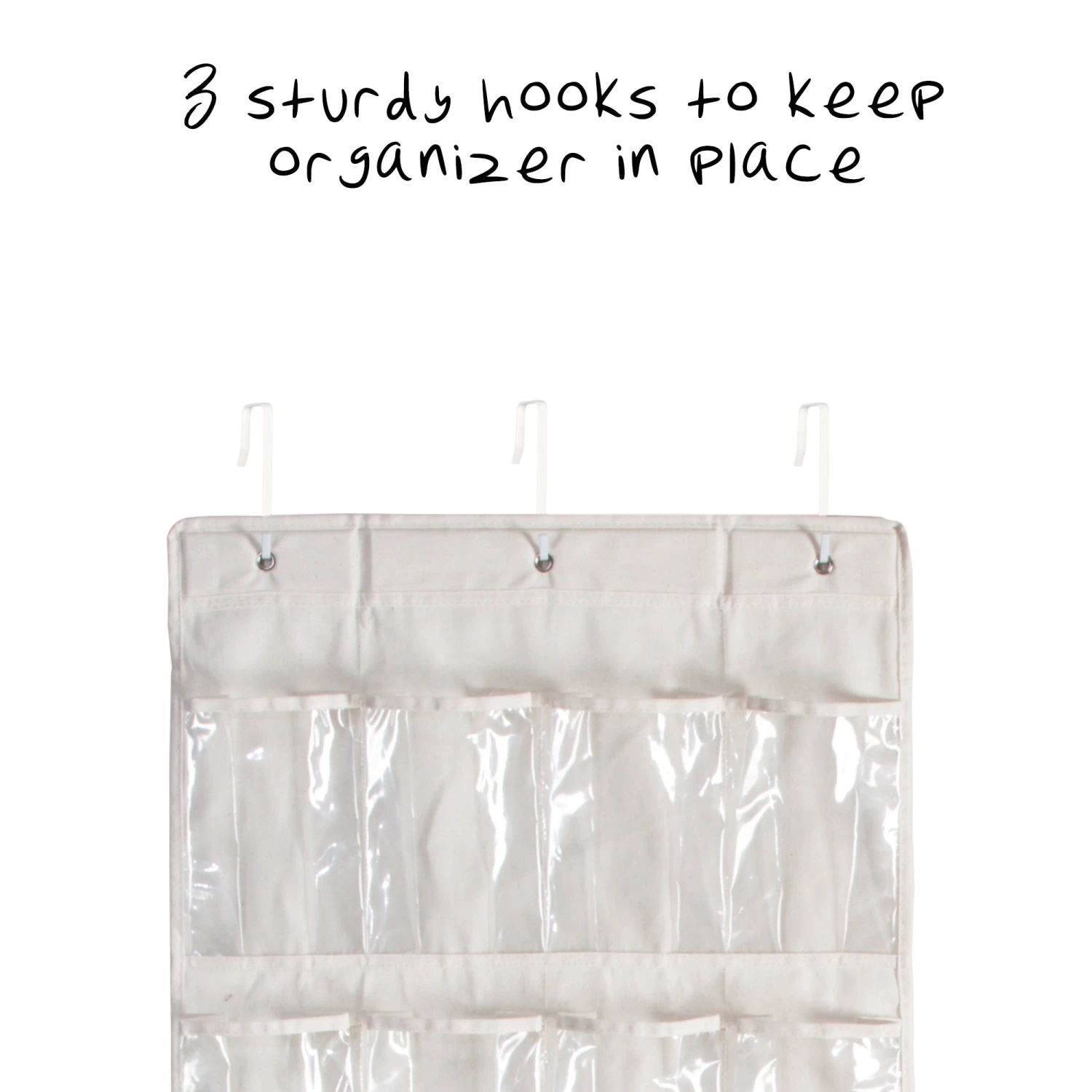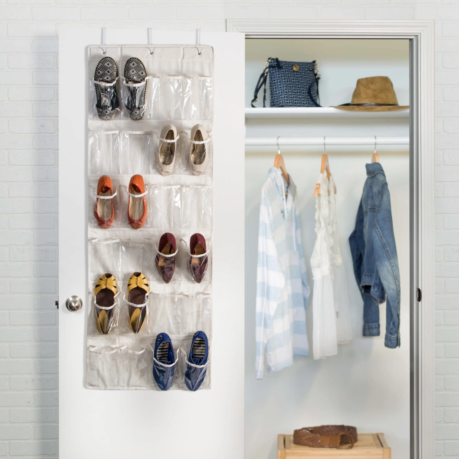 Turn a jumbled mess into a well-kept closet with this 24-Pocket shoe and accessory organizer. Easily hangs over any traditional closet door to keep 12-pair of shoes organized, off the floor, and out of sight. Complete with hanging hooks, this versatile organizer can also be used to store jewelry, scarves, gloves, craft supplies, small toys, or handheld electronics in an easy to access format. One item in Honey-Can-Do’s mix and match collection of sturdy hanging organizers available in several colors, it’s a perfect blend of economy and strength.