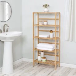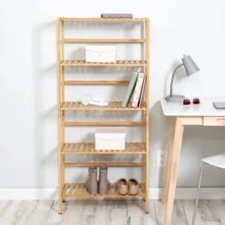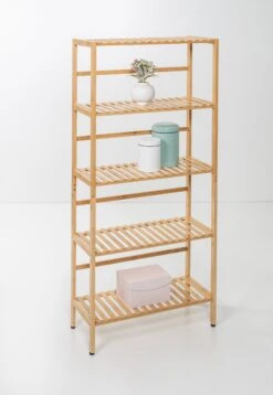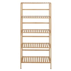 Transform your space with the natural elegance of this 5-Tier Bamboo Shelf. Crafted from 100% natural bamboo, this stunning piece not only provides functional storage but also enhances your decor with its beautiful, earthy tones. The adjustable shelves offer versatile storage for plants, books, or decorative items, seamlessly blending utility and style. At nearly 51-inches high and 10-inches in depth, it provides ample storage and display space while at the same time maximizing the open space in your room. This modern, boho shelf is perfect for any room—be it your kitchen, living room, bathroom, or office. Embrace the beauty of nature with a piece that is as practical as it is picturesque.