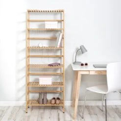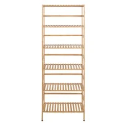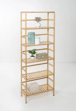 Transform your space with the natural elegance of this 6-Tier Bamboo Shelf. Crafted from 100% natural bamboo, this stunning piece not only provides functional storage but also enhances your décor with its beautiful, earthy tones. The adjustable shelves offer versatile storage for plants, books, or decorative items, seamlessly blending utility and style. At nearly 64-inches high and 10-inches in depth, it provides ample storage and display space while at the same time maximizing the open space in your room. This modern, boho shelf is perfect for any room—be it your kitchen, living room, bathroom, or office. Embrace the beauty of nature with a piece that is as practical as it is picturesque.