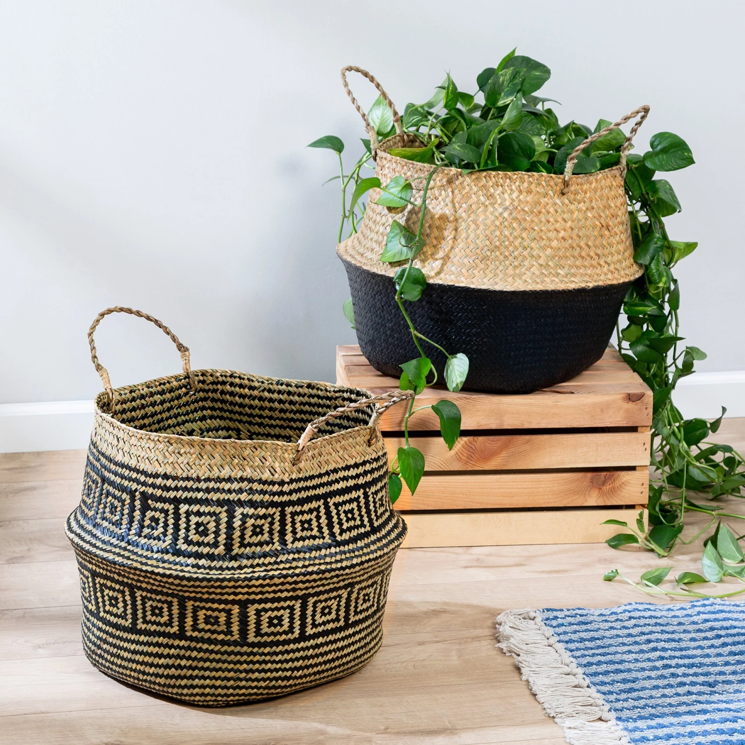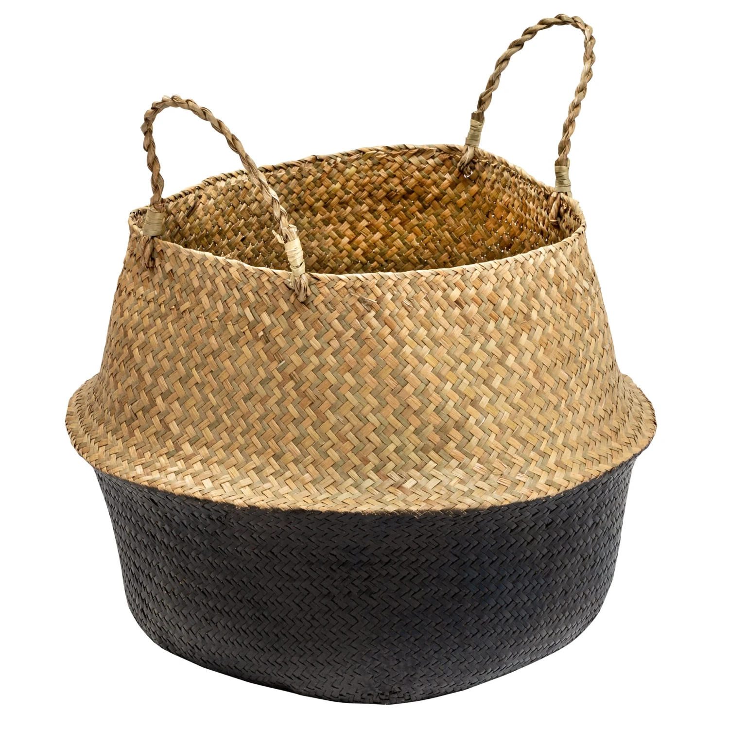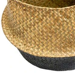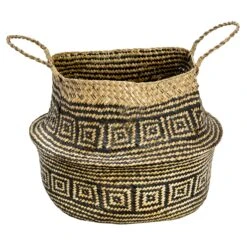 These folding seagrass belly baskets keep your space tidy by acting as catch-all storage for any room in the home. They hold anything from throw blankets to towels to books, even double as a place to showcase large plants. These nesting storage baskets are stackable when not in use and handles make transporting items from room to room simple. In addition to their undisputed functionality, their folding top half design brings a unique element to any space.