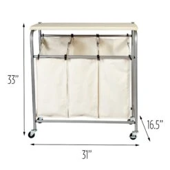 - Ironing board top provides multi-use and lifts easily to access clothes