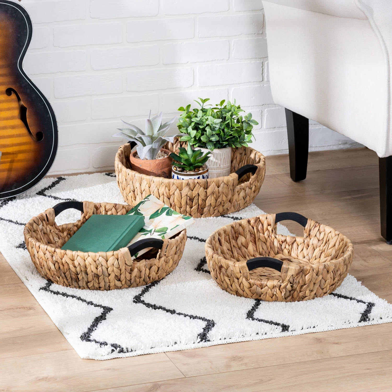 Personalize your home with our unique water hyacinth baskets. These all-purpose storage nested baskets can be used in any room without detracting from the look of your home. Each basket’s sturdy frame and wood handles ensure it can handle whatever you store in it, from toiletries to linens to sports equipment. Sustainable water hyacinth lets you organize your home while helping to save the planet. Coordinates with our wide variety of Honey-Can-Do water hyacinth products.