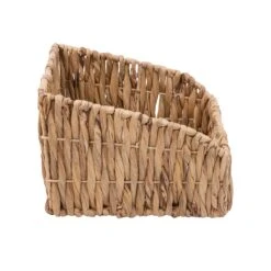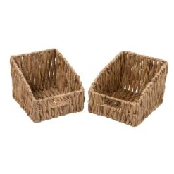 Ideal for storage you can see with cutaways that give you easy access to the contents inside. Wicker baskets with sturdy frames that can keep your office supplies at the ready or everyday use bath essentials within arms reach. The sturdy frame is wrapped in a handwoven natural hyacinth material that gives some fashion to your function.