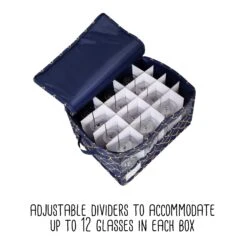 - Adjustable dividers to accommodate up to 12 glasses in each box