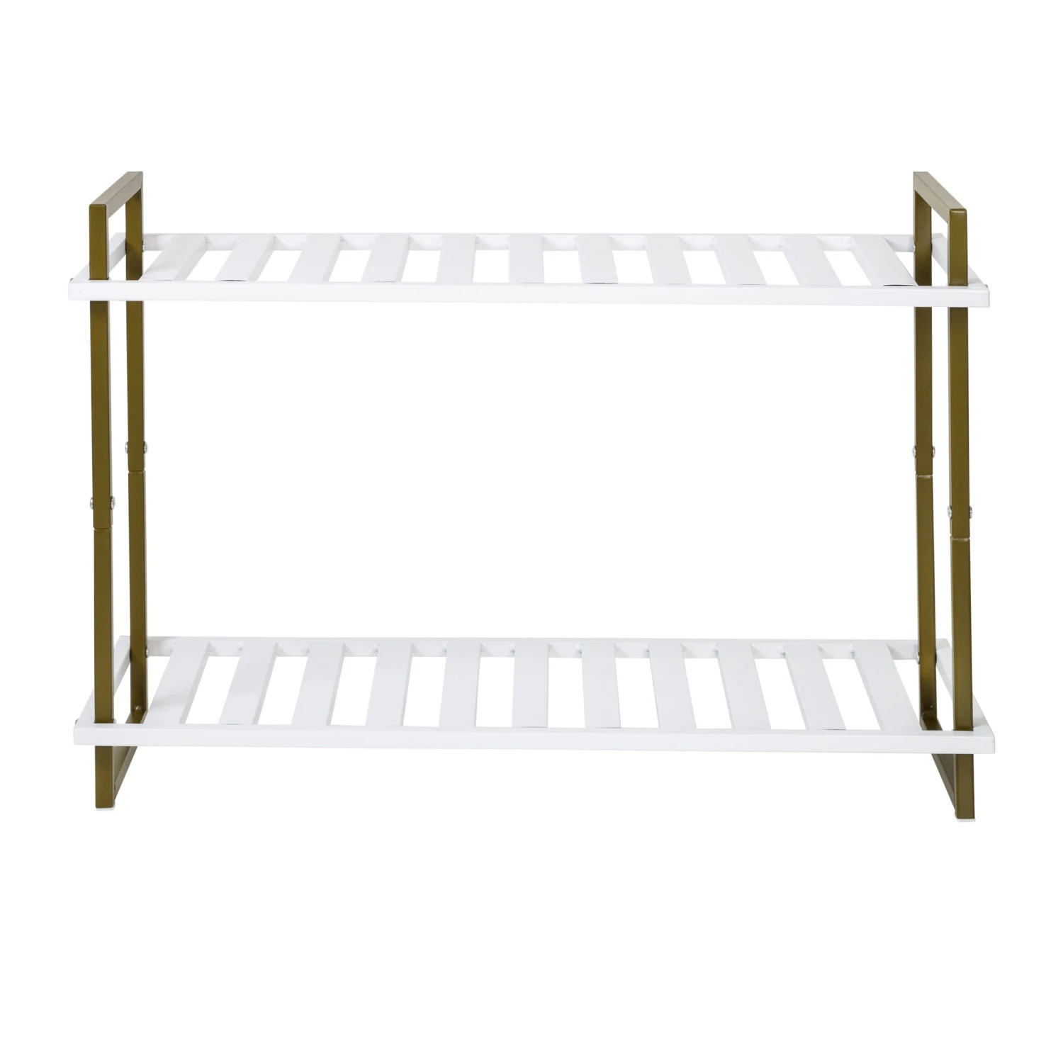 If an entryway has become a place for footwear to loiter, then this modern metal shoe rack is the solution to straighten those sneakers out. With two slatted tiers that can store up to six pairs, this shoe rack can transform a messy shoe pile into a tidy shoe display. The square tube design, finished with subtle yet striking color blocks of olive and white, lends a fresh modern edge to the classic steel frame construction. Slatted shelves prevent rain and slush from pooling, allowing more air to circulate to keep the boots, sandals, and slippers worn most looking their best.