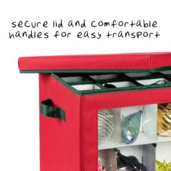 - Handles for easy carrying when it’s time to unpack and pack up the ornaments