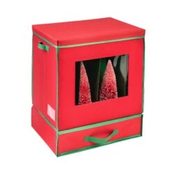 When it’s time for an army of nutcrackers to waltz off a fireplace mantle and march into a dark expanse of a storage closet, this is Christmas ornament box those toy soldiers need. Its 12 compartments are especially designed for taller ornaments, like nutcrackers, or snowmen, ceramic Christmas trees, train sets, or any other figurine whose heights excludes them from standard ornament boxes. Moveable divider inserts and a sliding drawer let you customize a safe packing space for your figurines’ requirements; and the clear-view panels allow you to check in on them, making sure they’re not up to any mischief.
