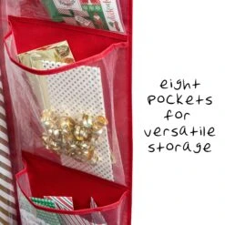- 8 clear pockets for customizable holiday gift wrapping storage