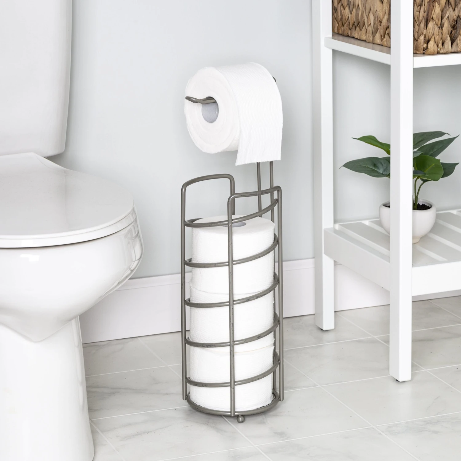 - Conveniently stores up to 3 toilet paper rolls in reserve plus one in use