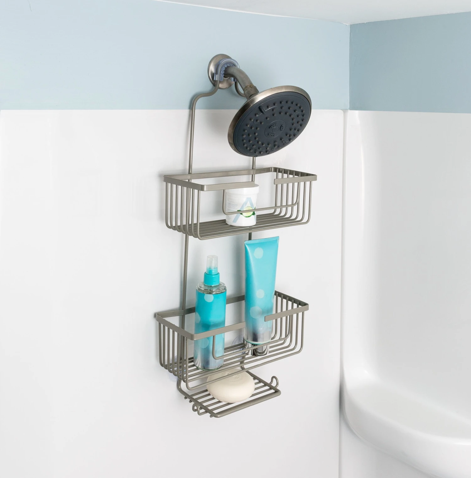 Upgrade your shower game with this sleek 3-tier Hanging Shower Caddy designed with a modern touch! It’s your go-to solution for keeping all your shower stuff tidy and accessible. With three shelves to hold your shampoo, conditioner, and body wash, along with two hooks for hanging your washcloth or loofah, everything stays organized and within reach. Worried about rust? Don’t be! This caddy is rust-resistant, ensuring it stays looking fresh for longer. And when it needs a clean, simply wipe it down with a damp cloth. Easy peasy! Whether you’re into modern vibes or just want a clutter-free shower, this caddy has got you covered.