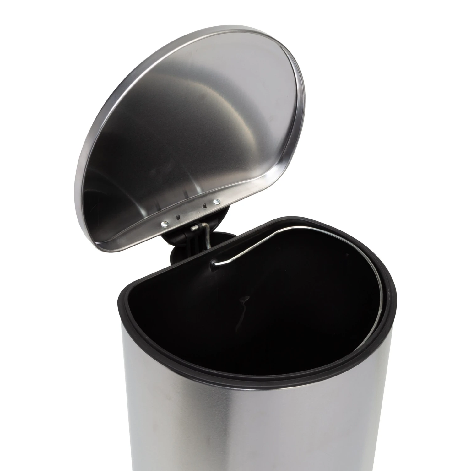 There is a certain retro charm to an oval trash can. Still, some just can’t ignore that the space it occupies doesn’t quite line up to its trash-holding capacity. A solution to this problem of efficiency: the semi-round trash can. This design lends a space the sleek curves of an oval trash can, while gaining a flat fit against a kitchen or pantry wall. Along with its overall design, this semi-round trash can has several other handy features. A step pedal brings a hands-free operation, while a soft-close lid keeps trash out of sight until its time to pull the removable liner from the stainless steel shell to take outside.