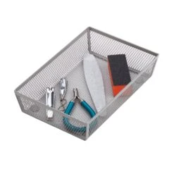 Introducing an easy way to organize those messy kitchen drawers. Our reinforced steel mesh drawer organizer is great for storing whisks, cutlery, flatware, office supplies, oversized utensils, gadgets and more. Made from sturdy steel mesh with an epoxy-coated finish that resists chipping and peeling, this organizer is a great fit for any décor. Foam pads on the bottom of the organizer also prevent any slipping.