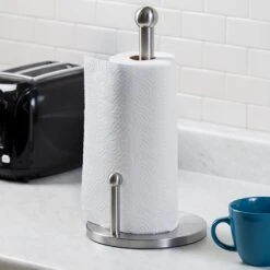 Roll your messes away with this trusty silver paper towel holder. Prop it up in your kitchen or keep it inside a kitchen cabinet. Either way, this silver holder will keep your paper towels at the ready for those nasty spills and inconvenient clean-ups.Â