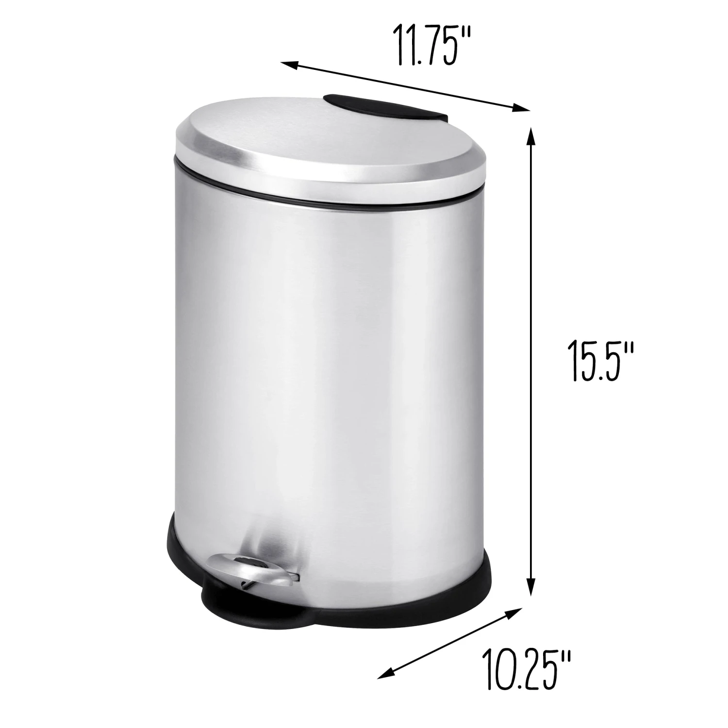 A contemporary addition to any home or office, this 12L (3.2 gallon) trash can boasts sturdy construction for daily use. The steel foot pedal provides hands-free operation to keep germs at bay. A plastic inner trash bucket is fully removable for easy emptying and cleaning. The brushed stainless, hand print resistant exterior is easy to clean and features a plastic fold down carrying handle.