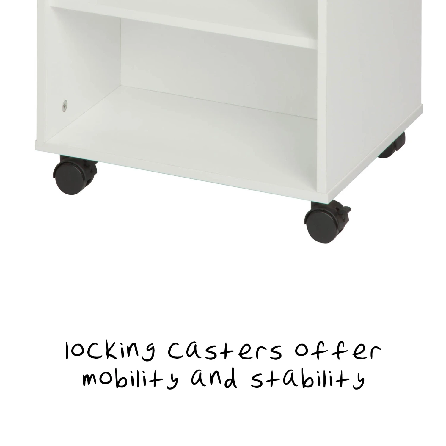 - Locking caster wheels let this creativity HQ roam from room to room
