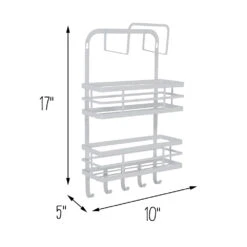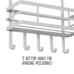 This small and mighty kitchen wall storage solution will have you hooked with its modern form and versatility as soon as it enters your home! With 3 shelves, 5 hooks, and the option to mount it to the wall or hang it on a cabinet door, it is brimming with possibilities. Use the unique hooks to create a hidden cabinet door storage for items like essential oils and medication. Or utilize unused vertical space in your kitchen and put this space-saver on display to keep scissors, baggies, condiments, and other essentials handy—without eating up drawer or counter space. Want to spice up your kitchen and your cooking? This white shelf organizer also makes for a stylish wall-mounted spice rack!
