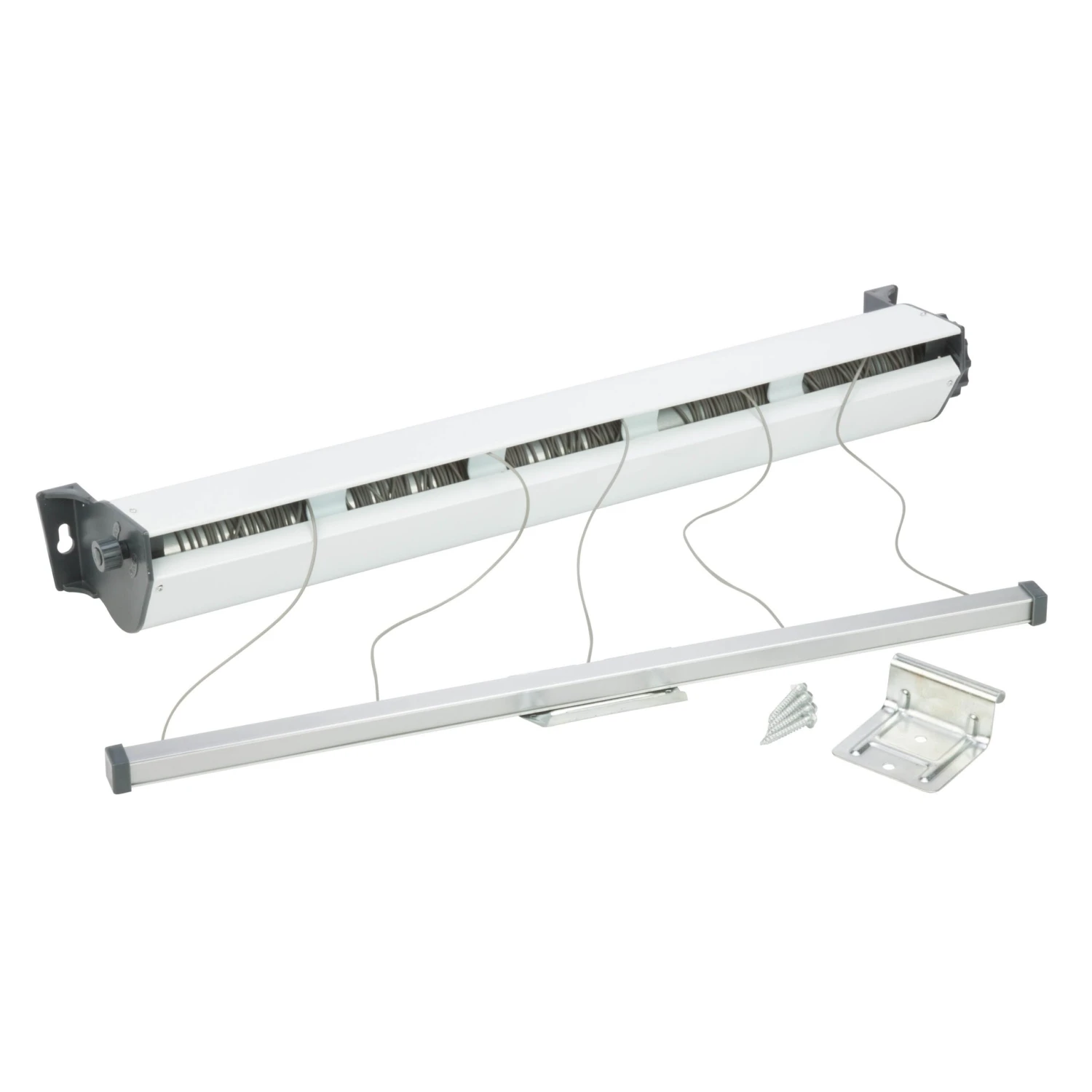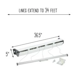 This 5-line extendable clothesline features an automatically retracting line for quick and effortless storage. The sturdy clotheslines are easy to clean and extend out 34 feet for use indoors or outdoors. Perfect for use in the laundry room, bathroom, or balcony. Dry dozens of items at once with a combined 170 linear feet of drying space! Installation is required.